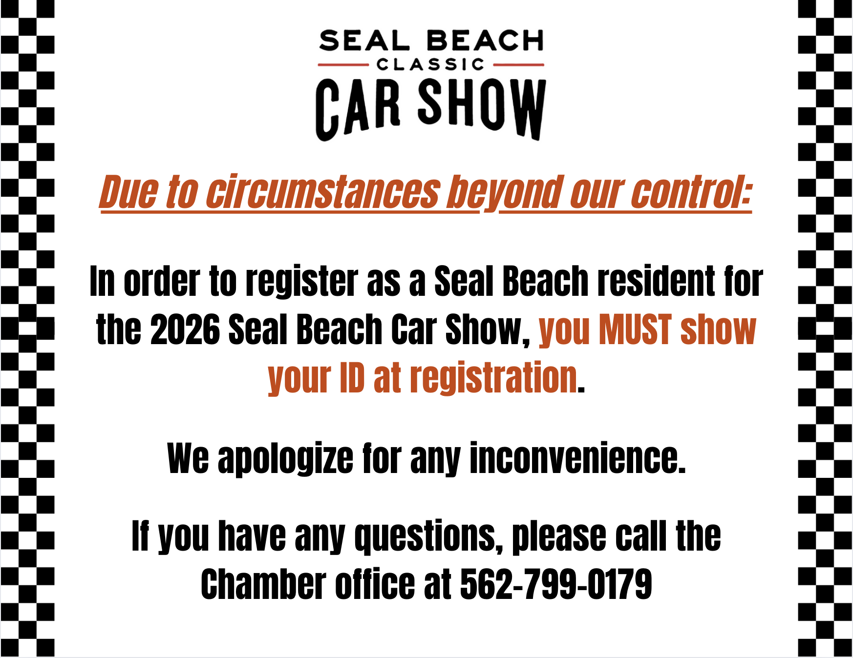 You should expect to receive your car show package about two weeks before the car show. If you have any questions you can call the Seal Beach Chamber office.